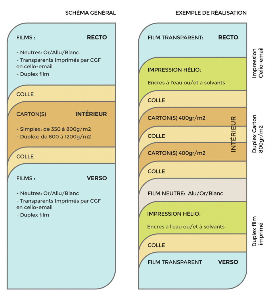 Pluri-technique : chaque fabrication fait l’objet de plusieurs opérations consécutives : impression, contre-collage, découpe etc.
